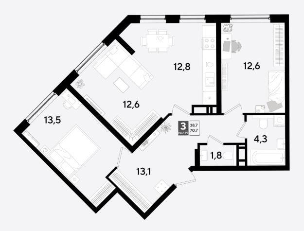 Трехкомнатная |