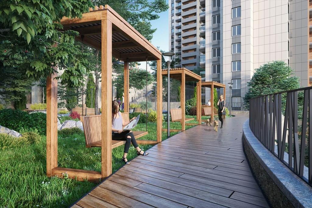 Дворы с великолепными беседками и гамаками под теневыми навесами, ландшафтным дизайном с южными цветами, кинотеатром под открытым небом, спортивными площадками и зоной барбекю