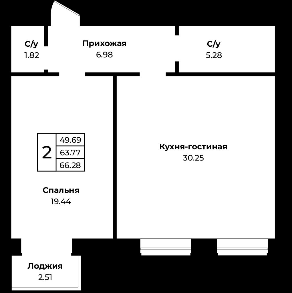 В продаже 2х комнатная квартира, S - 66.28 кв.м.
