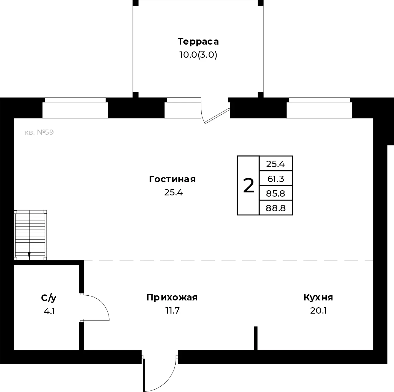 В продаже **комнатная квартира, S - 88.80 кв.м.