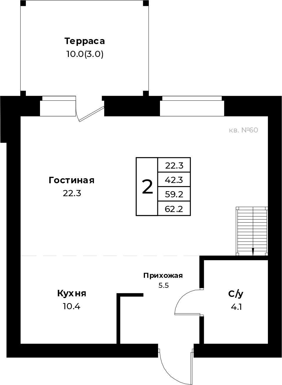 В продаже **комнатная квартира, S - 62.20 кв.м.