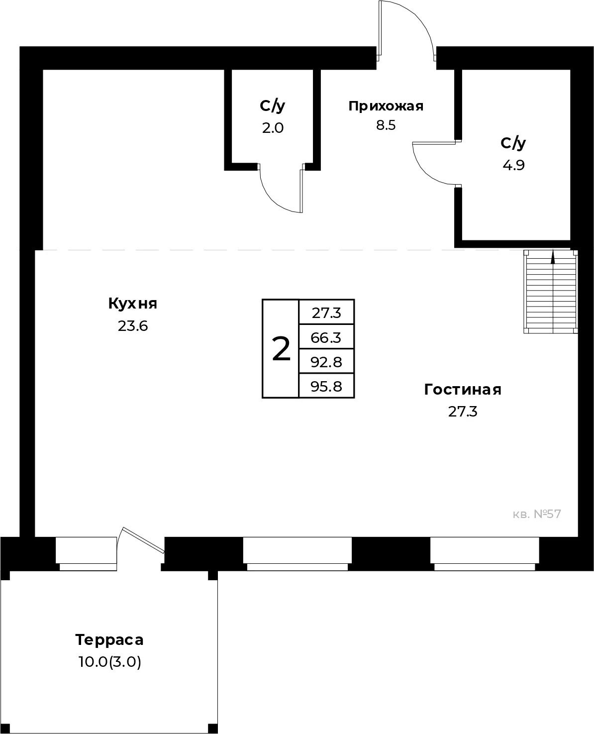 В продаже **комнатная квартира, S - 95.8 кв.м.