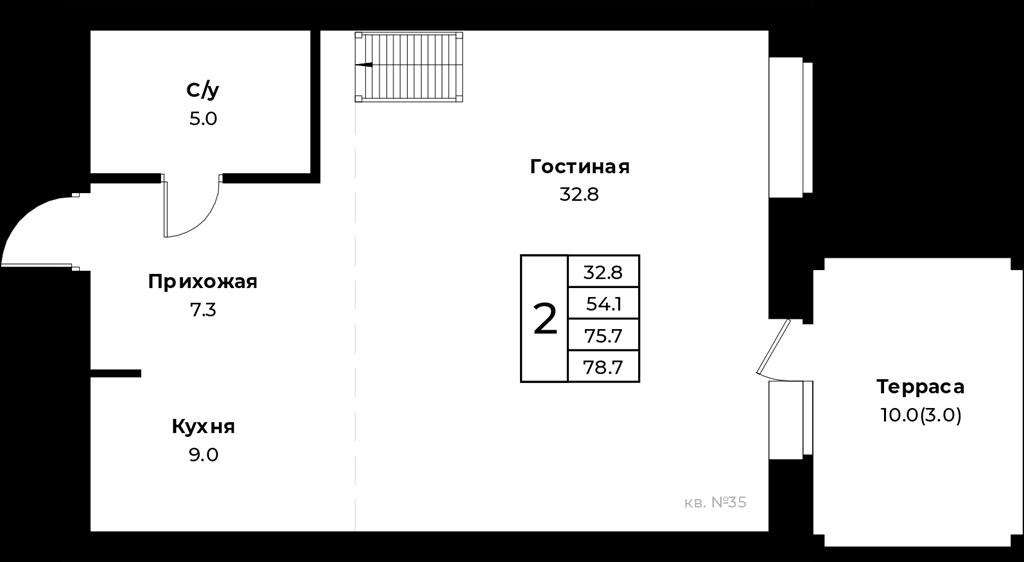 В продаже **комнатная квартира, S - 78.7 кв.м.