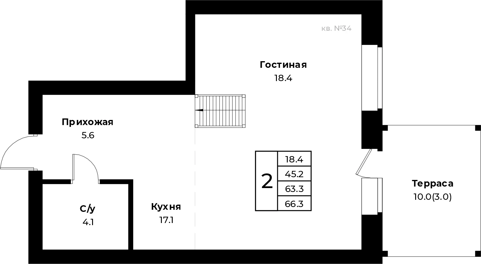 В продаже **комнатная квартира, S - 66.3 кв.м.