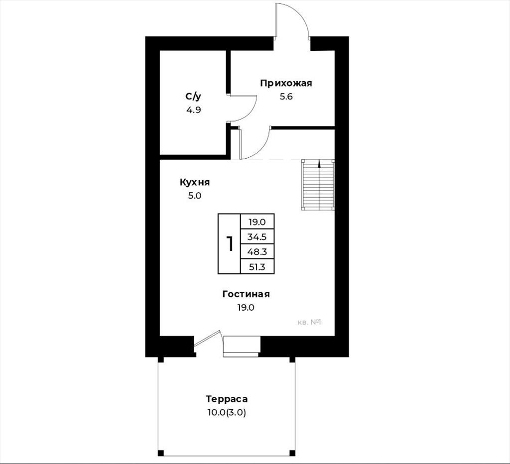В продаже **комнатная квартира, S - 51.30 кв.м.