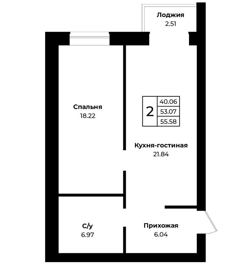 В продаже однокомнатная квартира, S - 55.58 м.кв