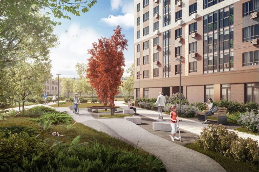 • Широкий зеленый бульвар со спортивными и игровыми площадками и зонами отдыха.