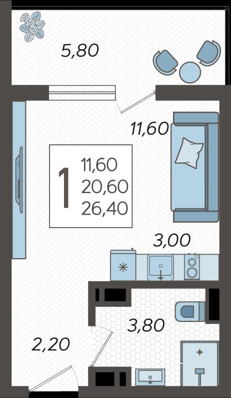 Представлена к продаже квартира студия S- 26,4 кв. м