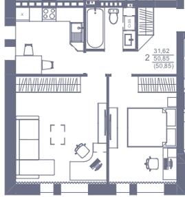 🏠В продаже двухкомнатная квартира, S – 50,85 кв.м