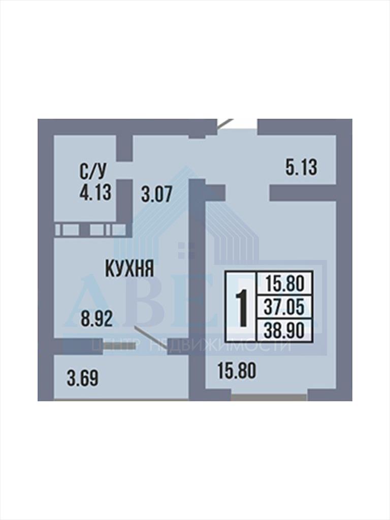 ✅ B продаже 1-комнатная квартира, S - 38.9 кв.м.