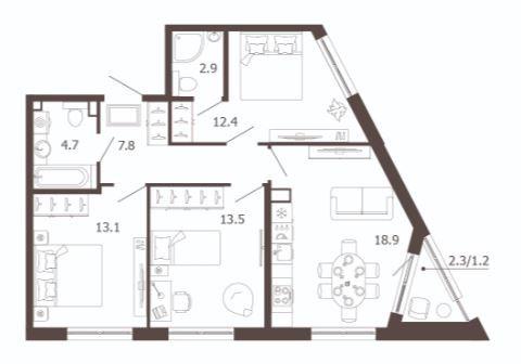 Трехкомнатная |