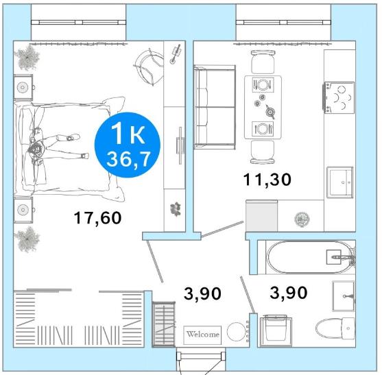 ✅ В продаже однокомнатная квартира, S –36,7 кв.м.