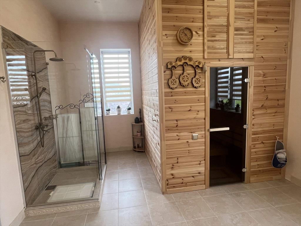 Царство простора: 2 этажа с высокими потолками (3.3-3.9 м), наполненные светом. 4 санузла (включая гостевую с сауной!), 3 изолированные мастер-спальни с гардеробными и санузлами, гостевая спальня, 2 уютные гостиные (на 1 этаже – с выходом на террасу).