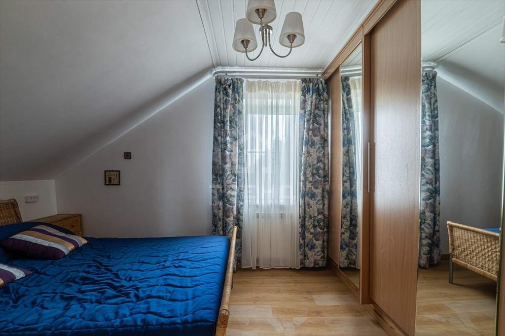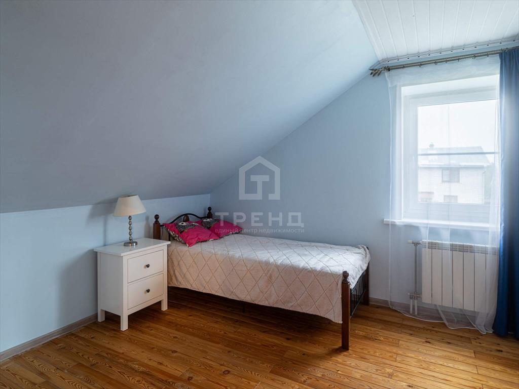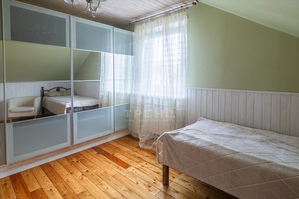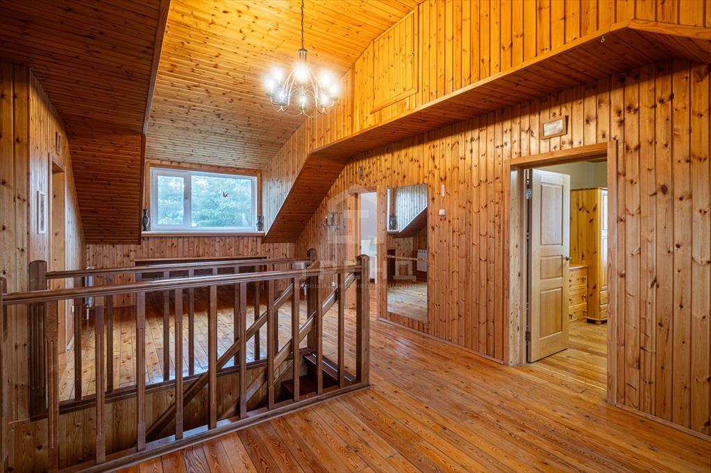 Мансардный этаж - четыре спальни, общий холл. Лестница в цоколь - сосна. Лестница на мансарду - вишня. Пол в цоколе - кварц-винил, пол первого этажа - ламинат, кафель, пол мансарды - лиственница.