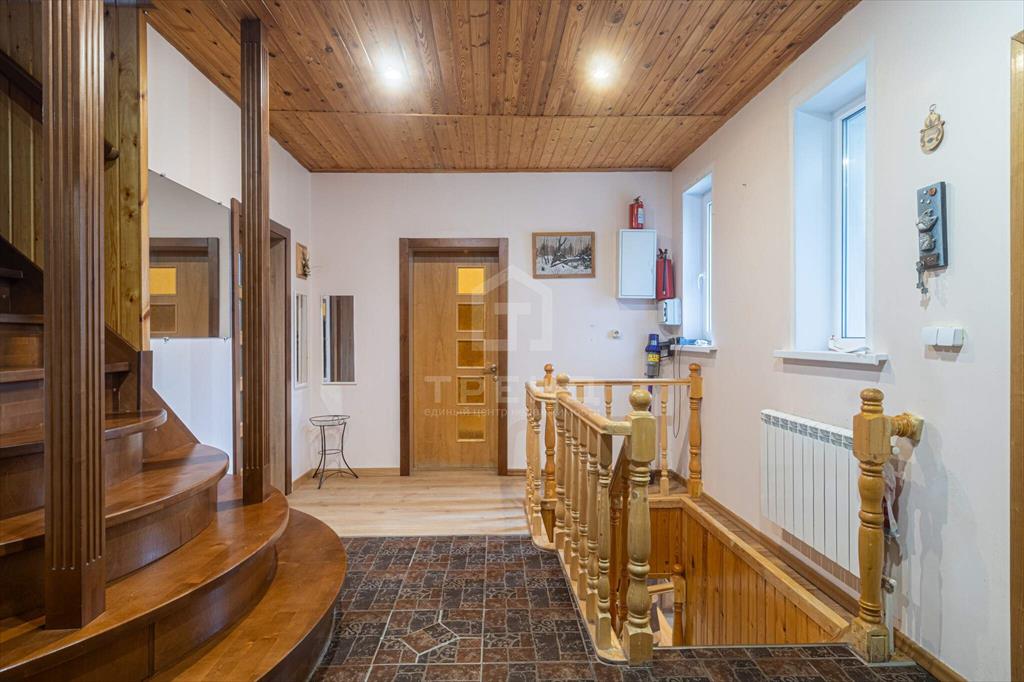 Год постройки - 2009, общая площадь - 240 кв. м, из них жилая - 180 кв. м. Дом имеет 10 комнат, просторную кухню площадью 30 кв. м и три раздельных и три совмещённых санузла. На участке площадью 10 соток расположены баня и гараж.