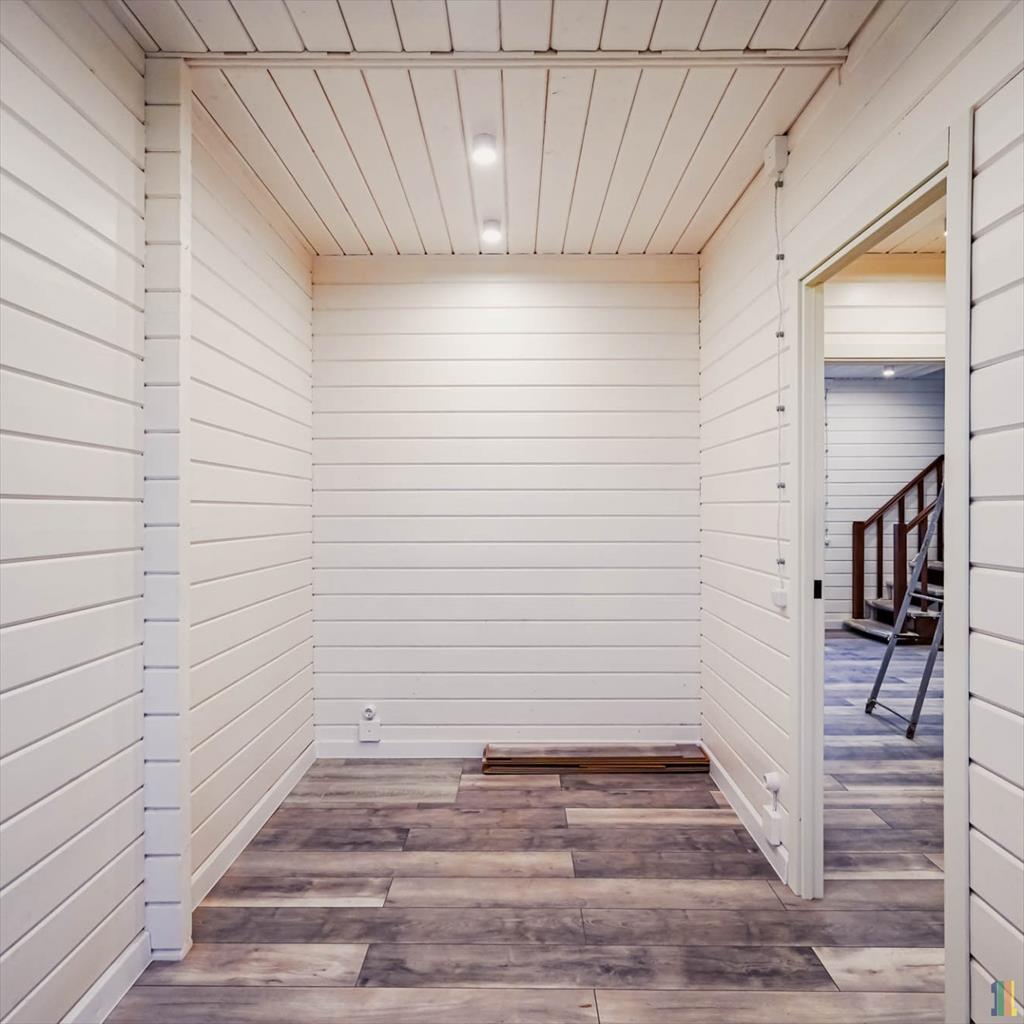 | Дом построен из сухого профилированного бруса 70*145, собранный по технологии двойная стена с заполнением теплоизоляционным материалом эковата. Покрашен по финской технологии финской краской Tikkurila.