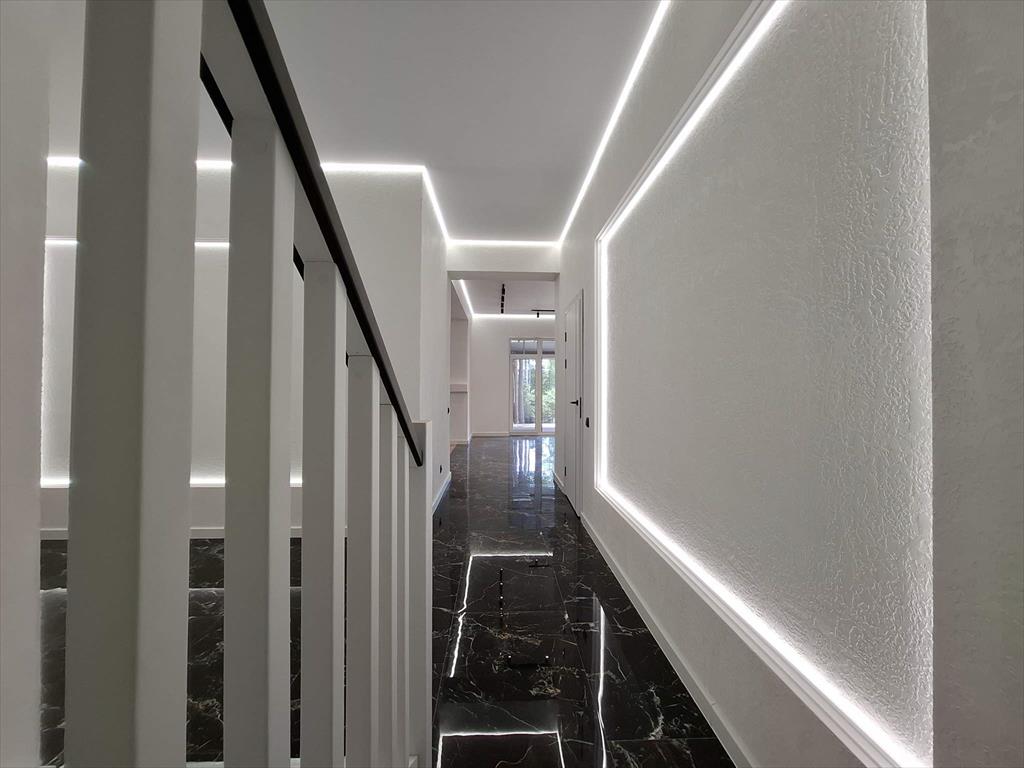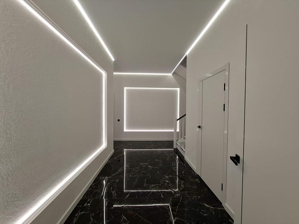 Полы – керамогранит на первом этаже, ламинат – на втором.