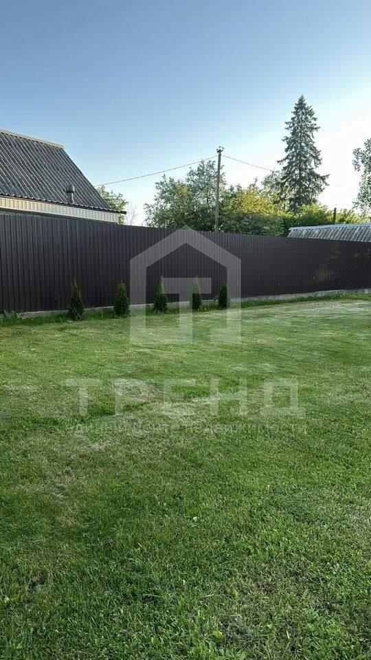Ровный, ухоженный участок с кустами смородины, крыжовника и туями.
