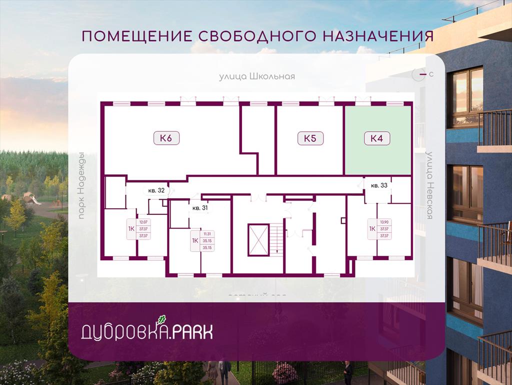 площадью 35,85 м2, по цене 7134150 по адресу Всеволожский район - городской поселок Дубровка, Школьная улица,2 |