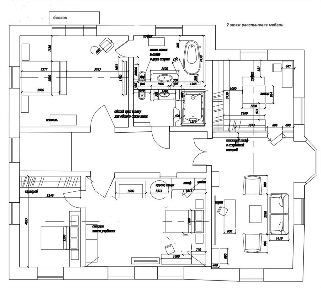 2 этаж: Балкон, 3 Спальни, Гардеробная, Гостиная, 2 Санузла (с ванной и гидромассажем).