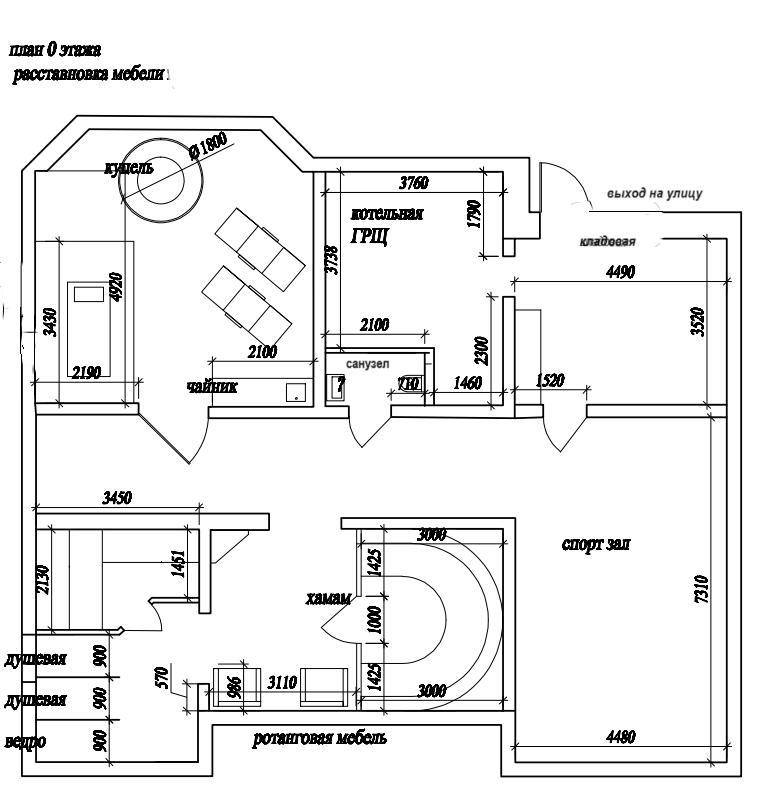 Цоколь: Хамам, Котельная, Кладовая, 2 Душевые, Прачечная, Спортзал, Комната отдыха.