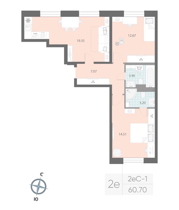 Двухкомнатная квартира 60,70 м2 по ул. Архивная 9к1 за 15235700 руб. |