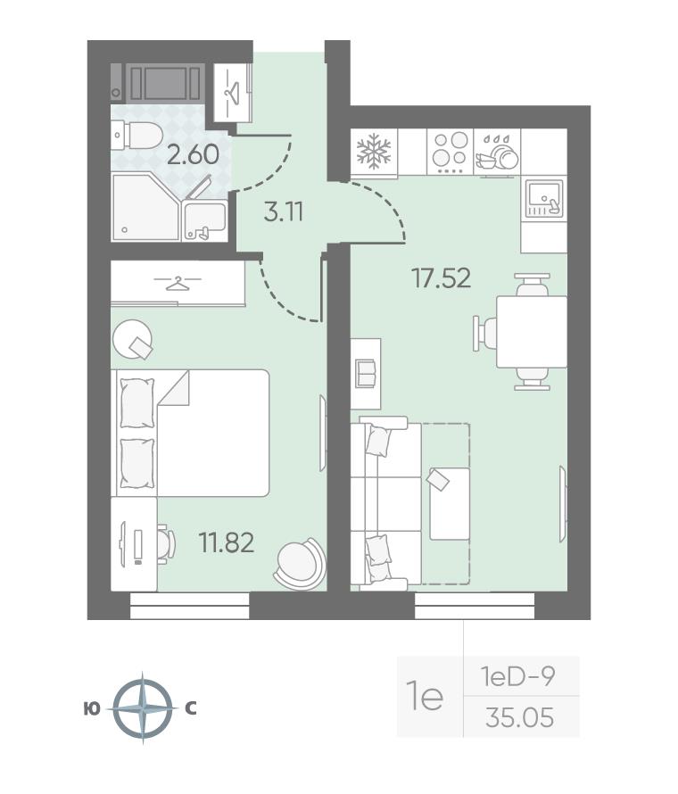 общая 35,15 м2, жилая 12,2 м2, кухни 17,05 м2 |