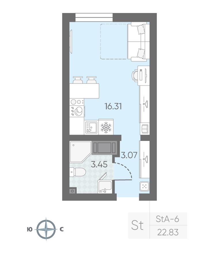 Квартира располагается на 7 этаже 23-этажного дома в ЖК Морская миля.