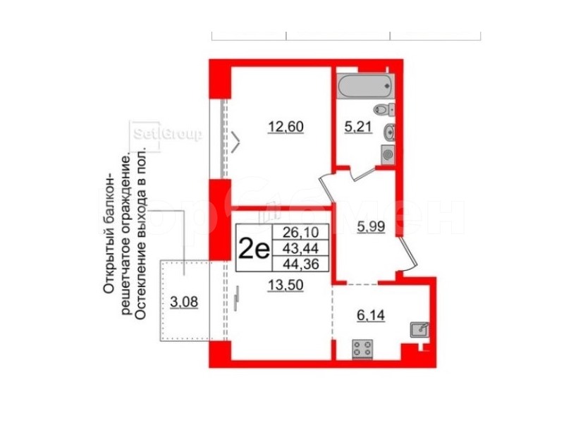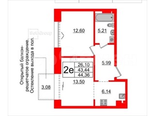 Двухкомнатная квартира 43,40 м2 по ул. за 26850000 руб. |