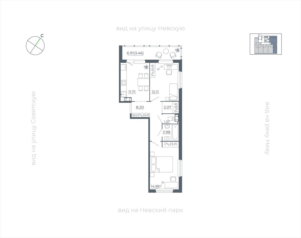 | Двухкомнатная квартира по ул. Всеволожский район, городской поселок Дубровка, Невская улица,2 в Санкт-Петербурге |