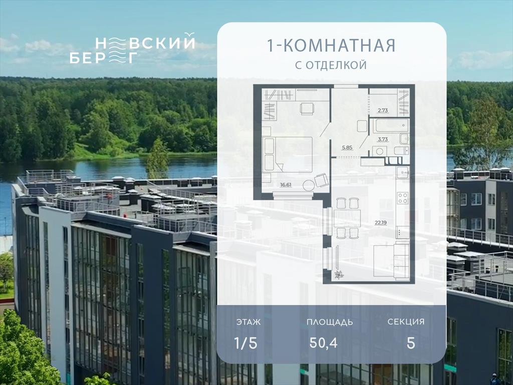 Квартира располагается на 1 этаже 5-этажного дома в ЖК Невский берег.