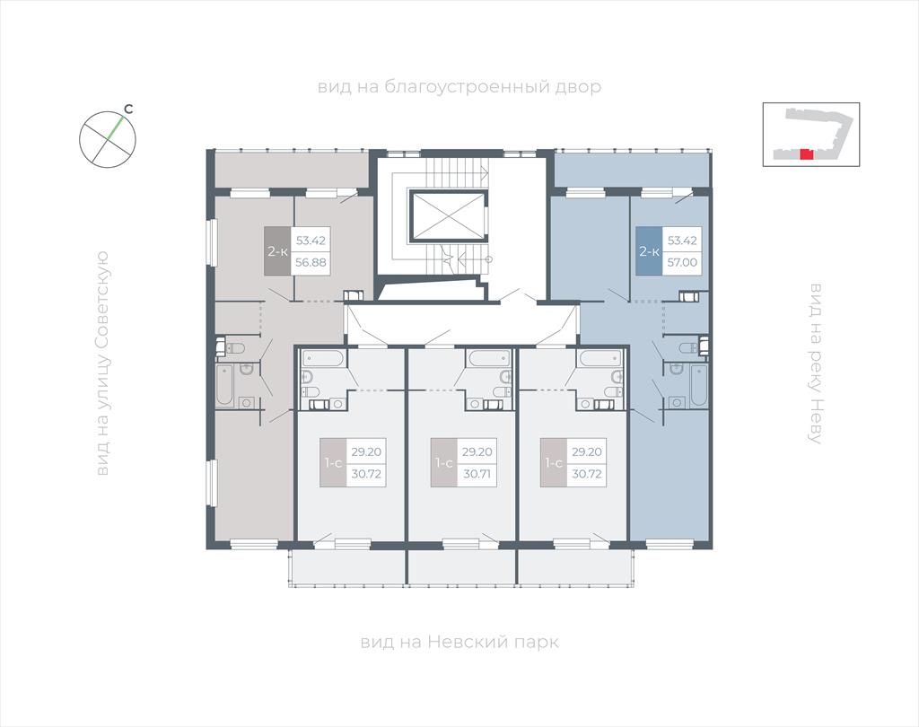 Квартира располагается на 2 этаже 5-этажного дома в ЖК Невский берег.