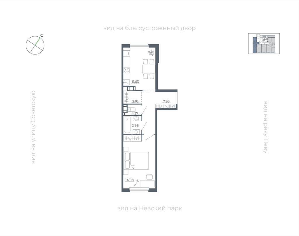 | Однокомнатная квартира по ул. Всеволожский район, городской поселок Дубровка, Невская улица,2 в Санкт-Петербурге |
