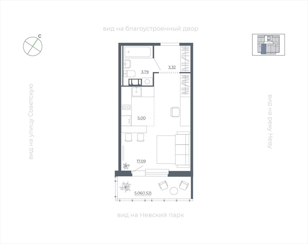 Квартира располагается на 2 этаже 5-этажного дома в ЖК Невский берег.
