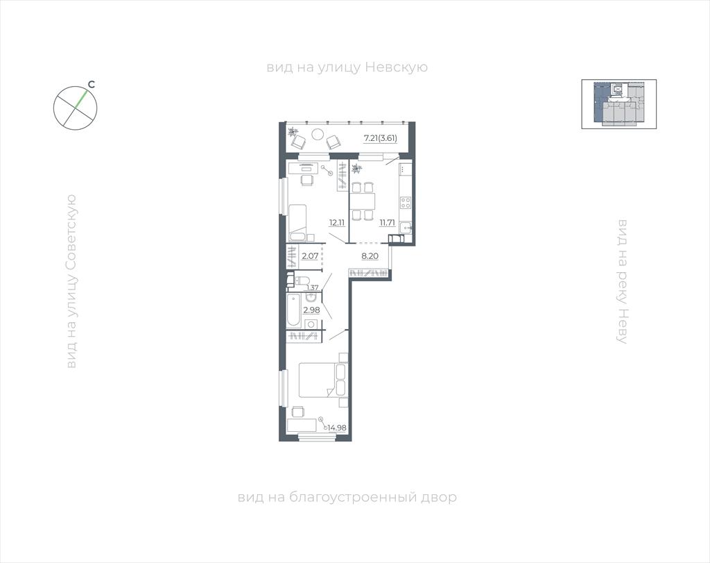 Квартира располагается на 4 этаже 5-этажного дома в ЖК Невский берег.