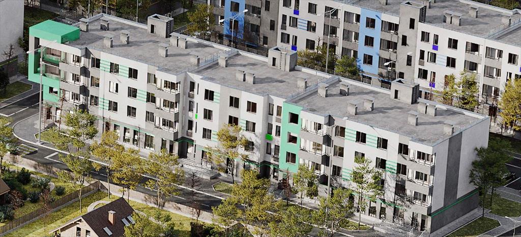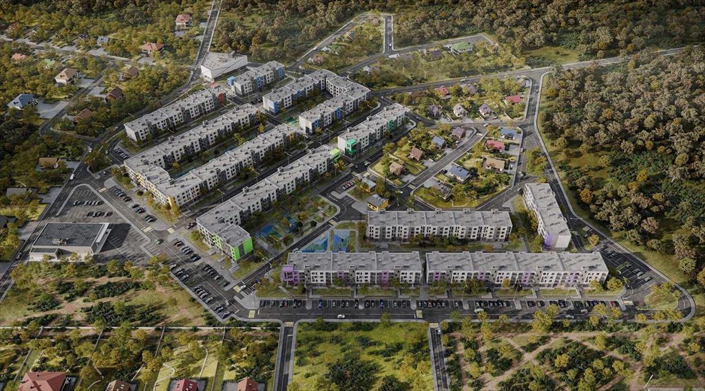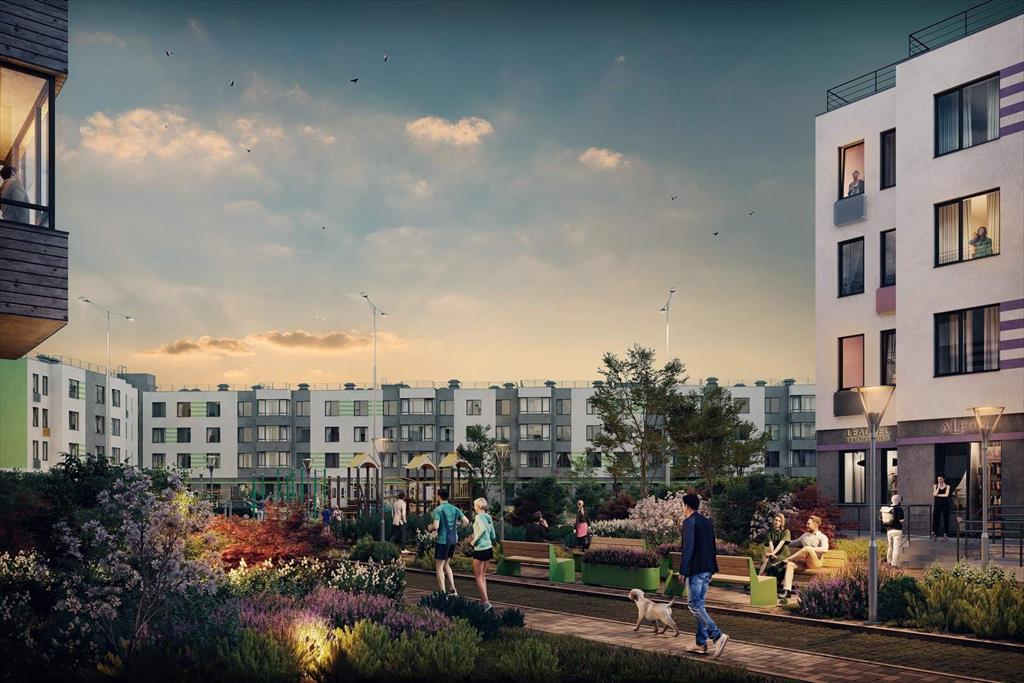 В 10-ти четырехэтажных корпусах сможет поселиться 1171 семья. Дома располагаются блоками, образуя уютные закрытые и безопасные дворы с большим количеством зеленых насаждений и с зонами отдыха для взрослых и детей.