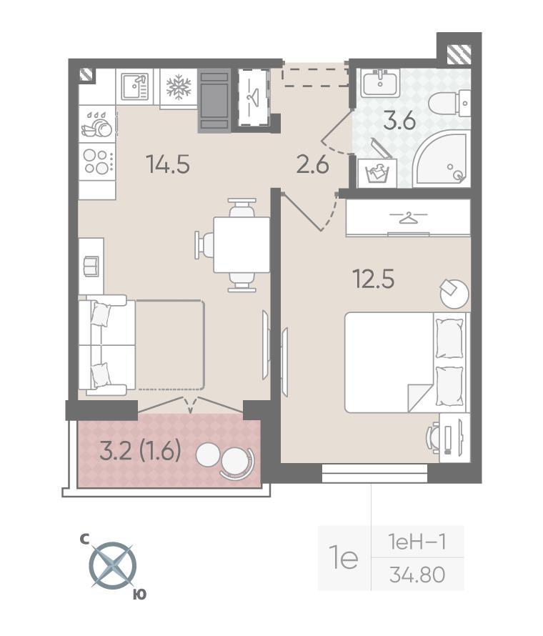 Однокомнатная квартира 34,80 м2 по ул. Санкт-Петербургское шоссе 1 за 7106160 руб. |