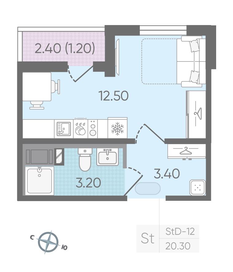 квартира 20,30 м2 по ул. Муринская дорога 64 за 4585770 руб. |