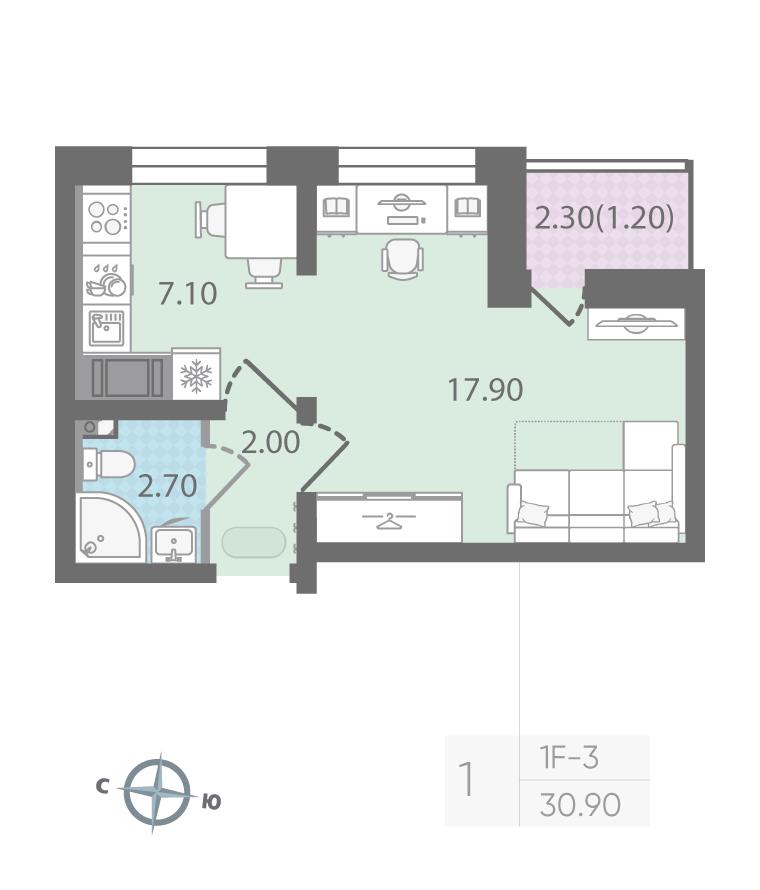 Однокомнатная квартира 30,90 м2 по ул. Муринская дорога 64 за 6210900 руб. |