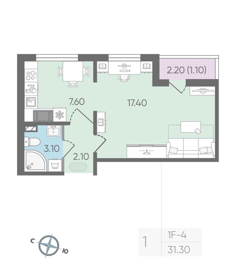 Однокомнатная квартира 31,30 м2 по ул. Муринская дорога 64 за 6297560 руб. |