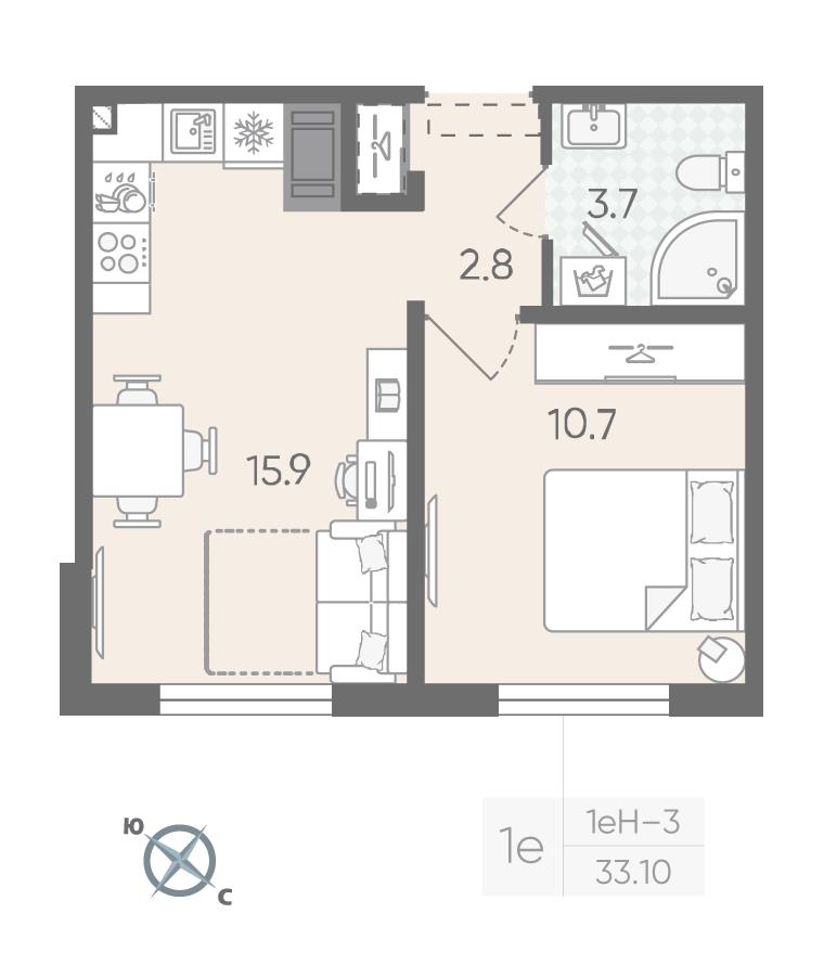 Однокомнатная квартира 33,10 м2 по ул. Муринская дорога 64 за 6437950 руб. |