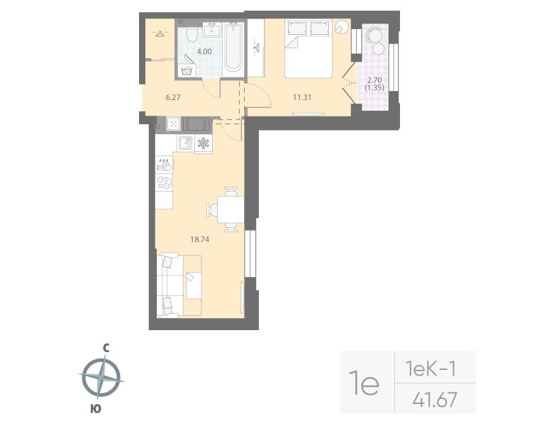 Однокомнатная квартира 41,67 м2 по ул. Октябрьская набережная 42 за 15647085 руб. |