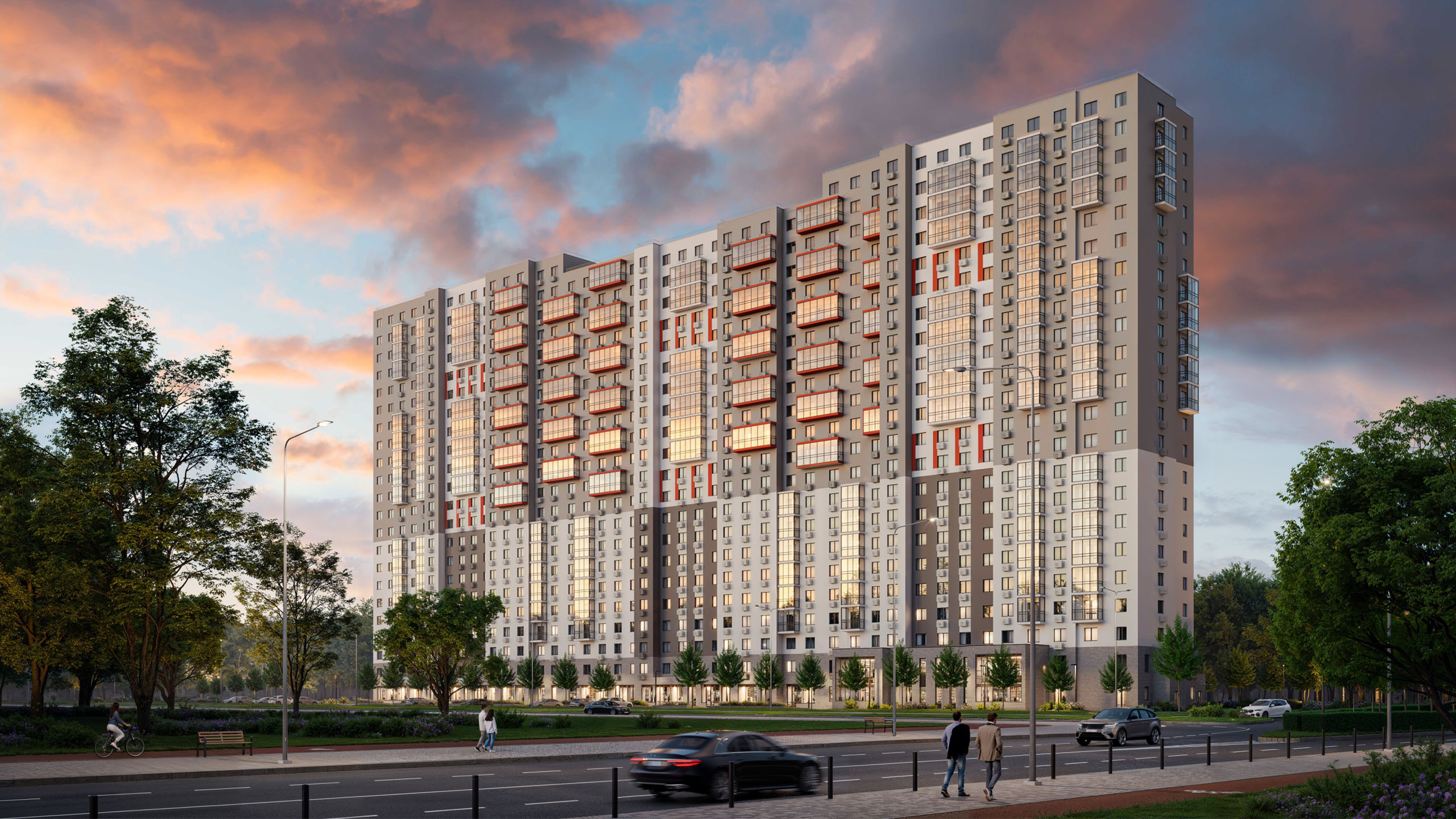 Отдельная многоуровневая парковка, парковка охраняется. Обеспечение безопасности: видеонаблюдение. Инфраструктура: школа, детский сад, поликлиника, детские площадки, спортивные площадки, места для отдыха, супермаркет, рестораны, коммерческие объекты.