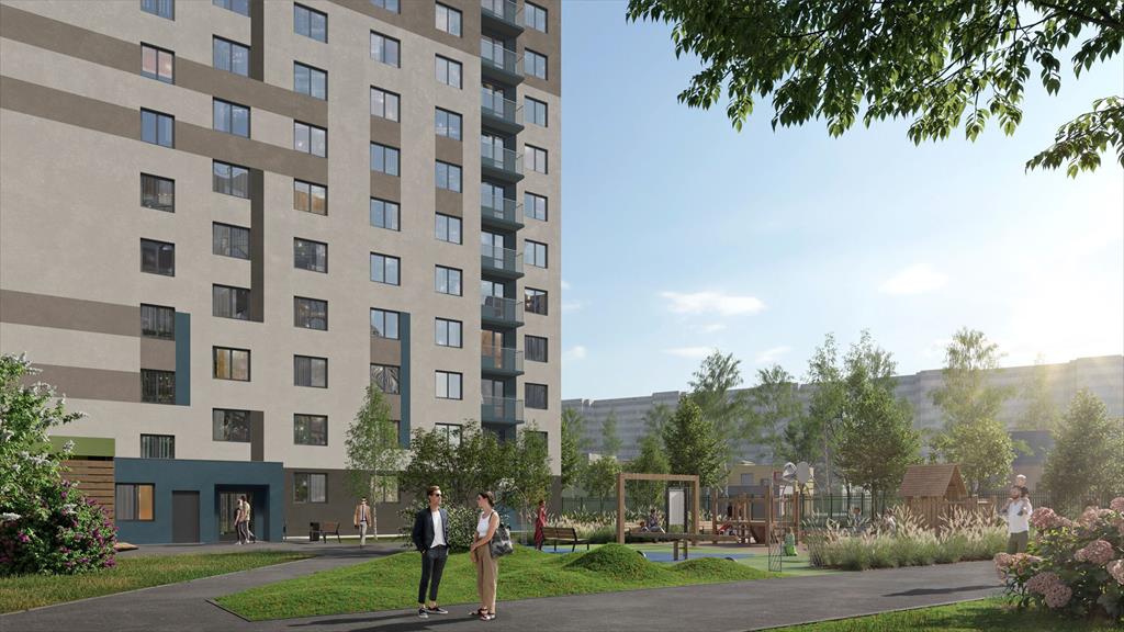 Квартира располагается на 12 этаже 16-этажного дома в ЖК ЛСР. Ржевский парк.