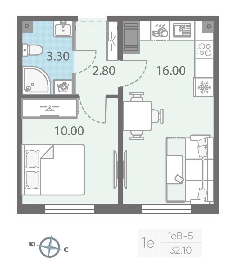 общая 32,1 м2, жилая 10 м2, кухни 16 м2 |