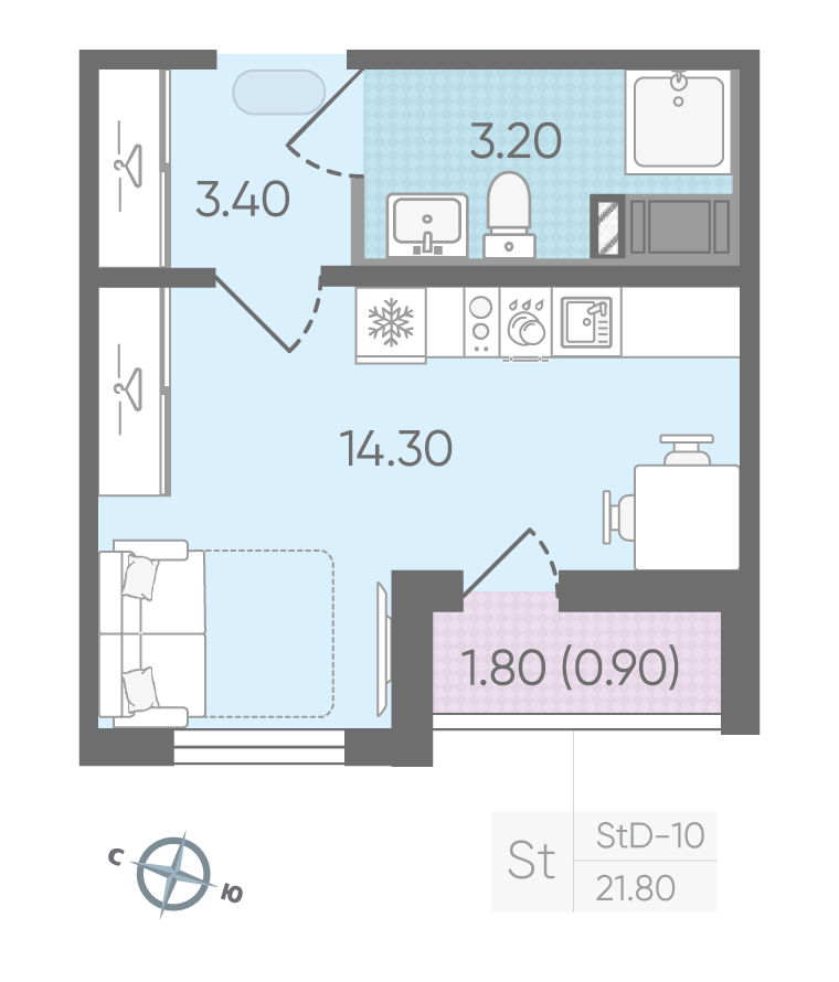 квартира 21,80 м2 по ул. Муринская дорога 64 за 4841780 руб. |