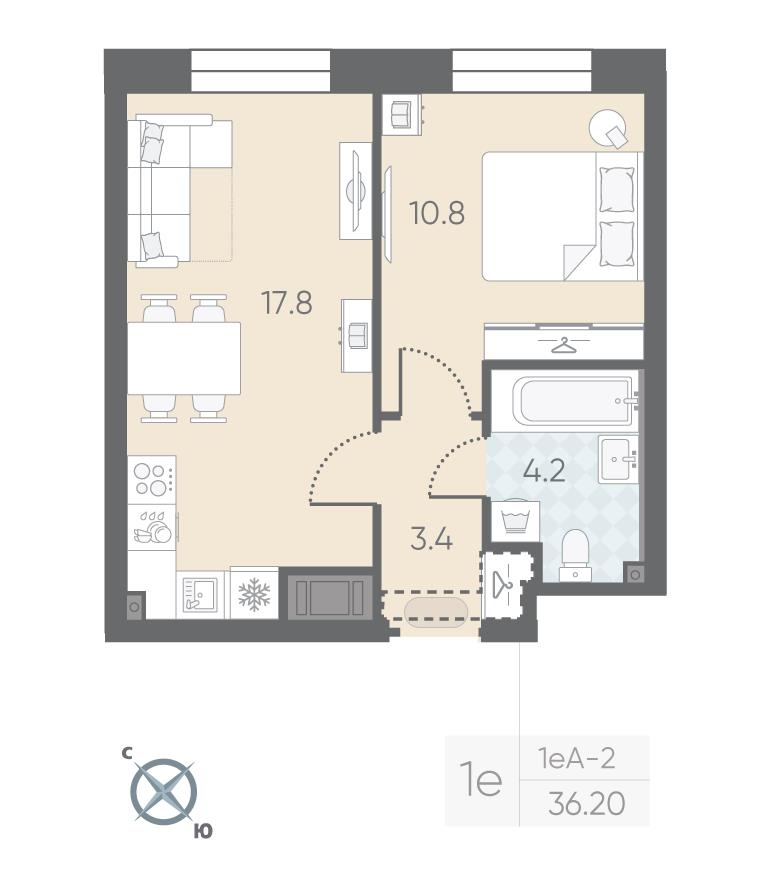 общая 36,2 м2, жилая 10,8 м2, кухни 17,8 м2 |