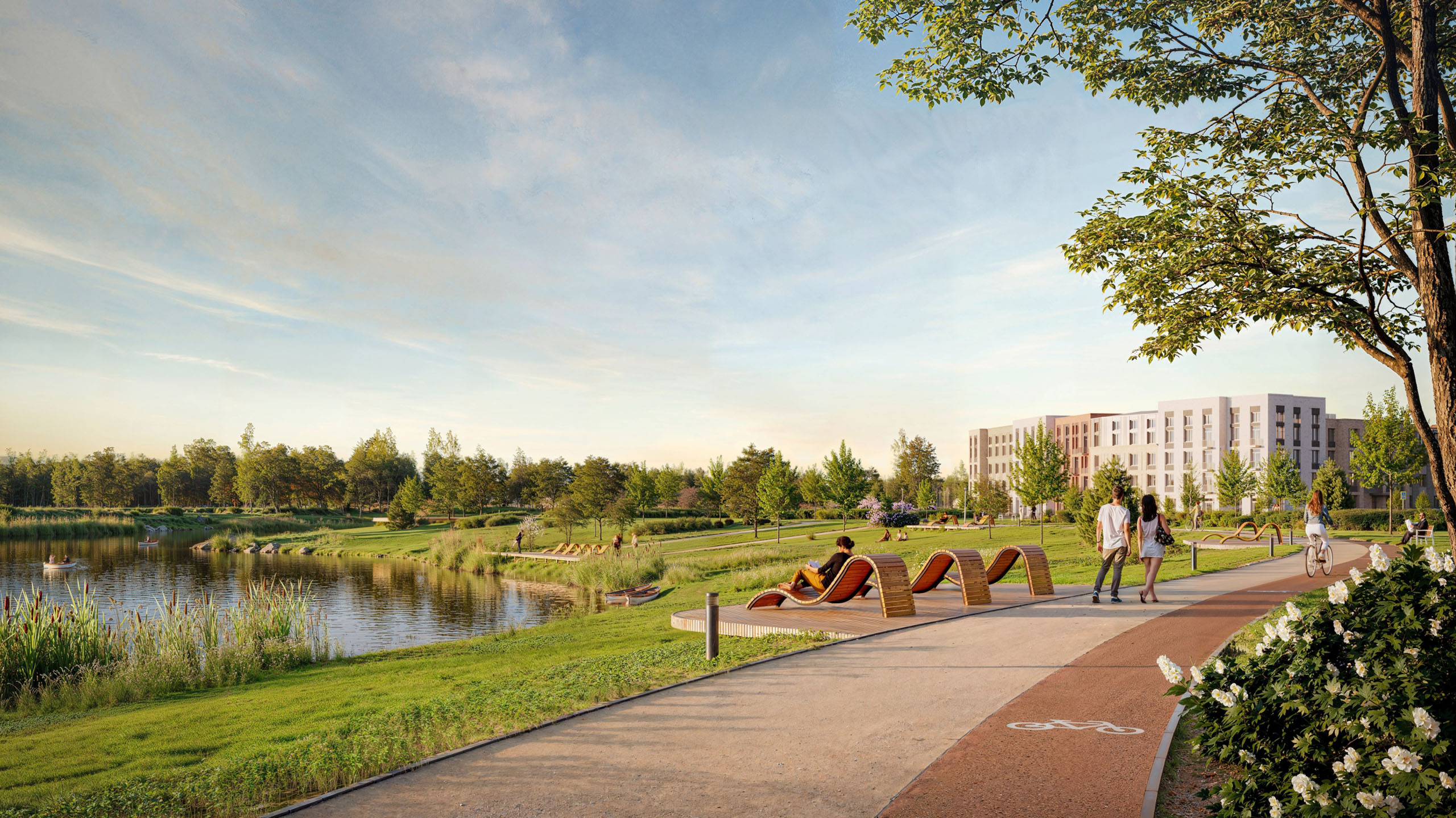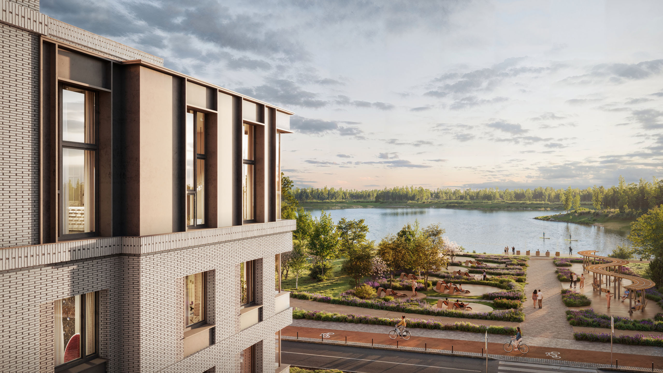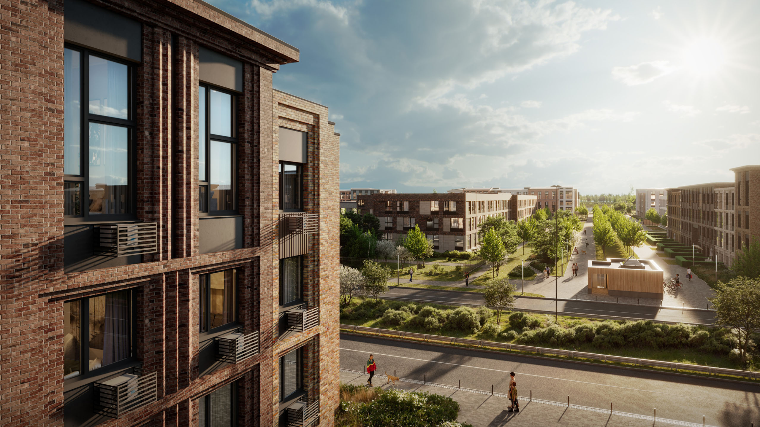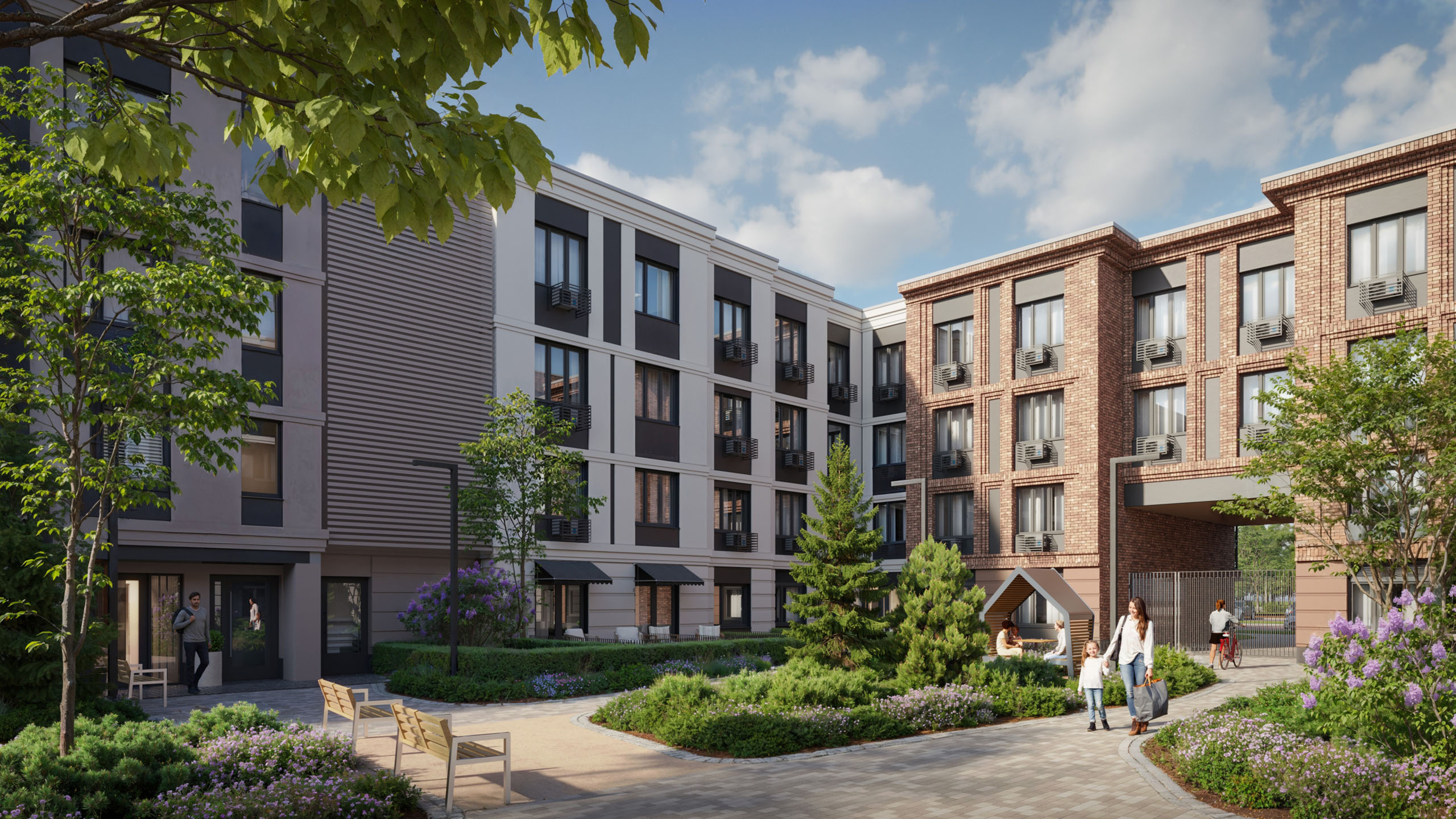 Дома в проекте высотой не более 4-х этажей, оборудованы самыми современными инженерными системами, включая лифты Метеор (бывший ОТИС) и систему «Умный дом». Дизайнерские холлы и благоустройство удачно дополняют выразительные фасады из плитки.
