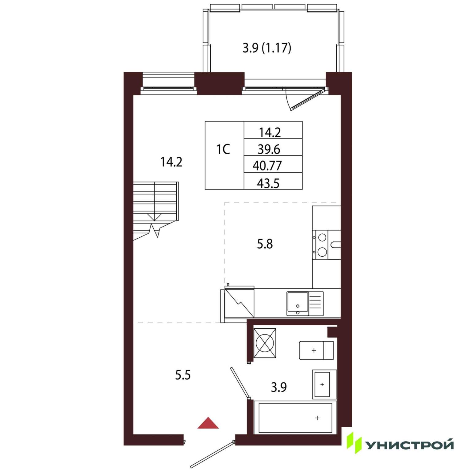 Однокомнатная квартира 40,77 м2 по ул. Сестрорецк Авиационная улица,1 за 14007000 руб. |