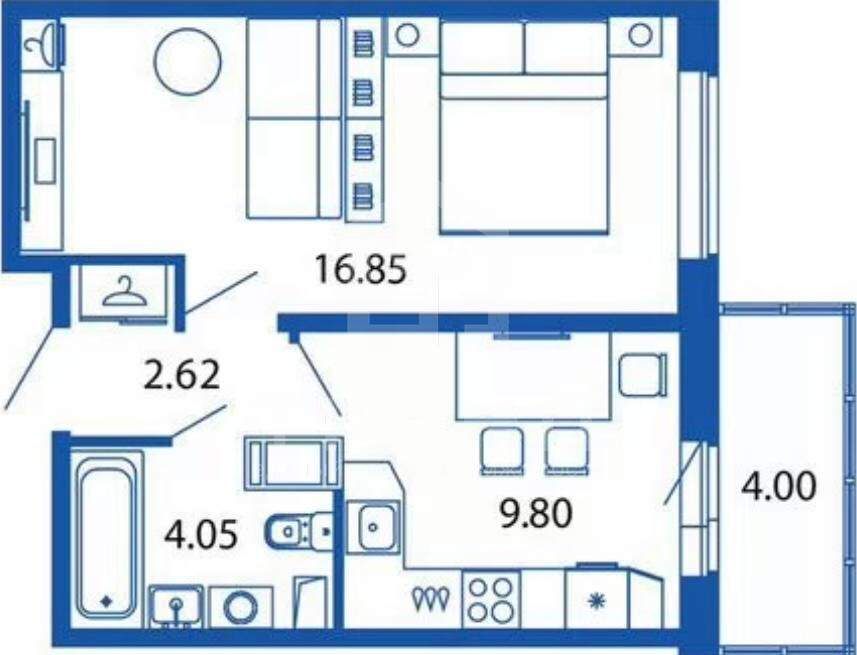 общая 32,7 м2, жилая 16,85 м2, кухни 9,8 м2 |